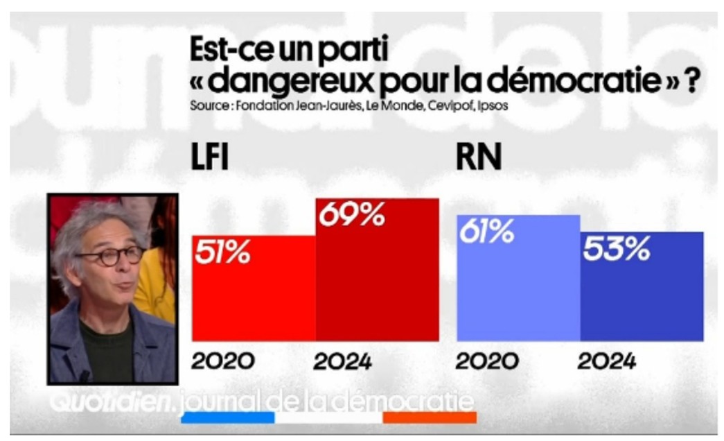 À bien observer la délectation – pour ne pas dire la hargne – de certains commentateurs, comme les mécanismes qui contribuent depuis une décennie à nourrir le climat de diabolisation dans lequel s’inscrit cette parution, on comprend en effet à quel point les grands médias, a fortiori audiovisuels, sont devenus un lieu anti-démocratique par excellence, où les règles qui sont censées encadrer les pratiques du journalisme et garantir un certain pluralisme démocratique n’ont plus cours. Comment, dans de telles conditions, espérer qu’un « débat » équitable et informatif au sujet de LFI – et de la pratique du pouvoir, plus généralement – puisse se tenir sur la place médiatique ? Quant à produire ce que ces journalistes prétendent espérer – une autocritique, dont eux-mêmes sont systématiquement incapables s’agissant de leurs propres pratiques –, le matraquage tel qu’il se donne à voir ne peut évidemment qu’entraîner l’inverse.