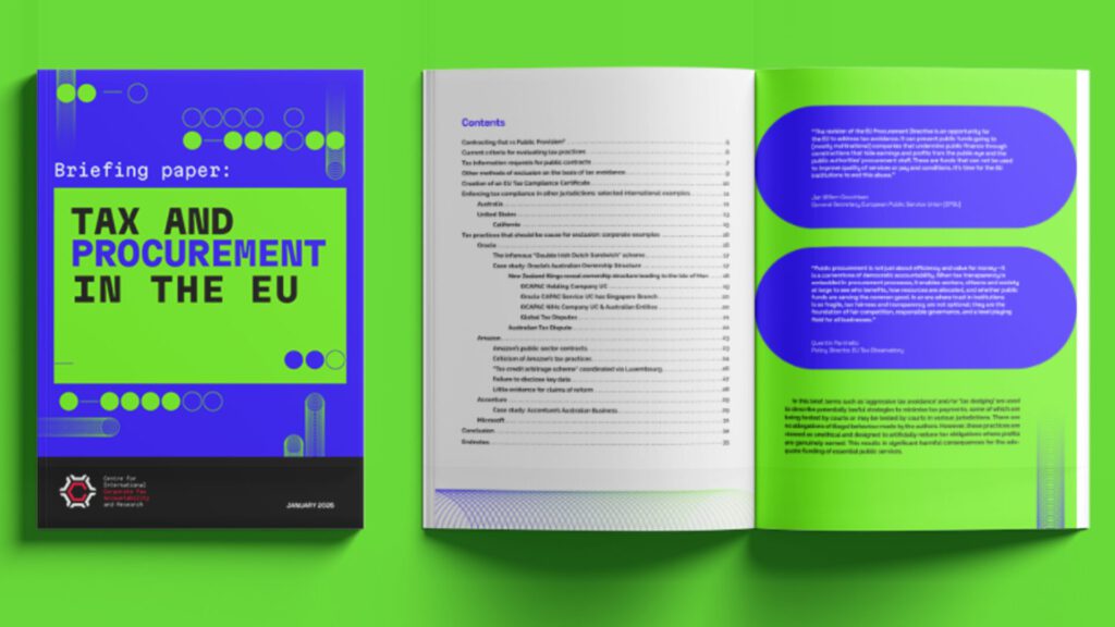 « On attend des fonctionnaires qu’ils en fassent plus avec moins, tandis que certaines des entreprises qui obtiennent des marchés publics font tout leur possible pour contribuer moins », a déclaré « Les fonds publics devraient renforcer les services publics, et non subventionner des modèles économiques fondés sur une évasion fiscale agressive. La révision des règles de l’UE en matière de marchés publics doit faire de la transparence fiscale une condition fondamentale pour remporter des marchés publics importants. »