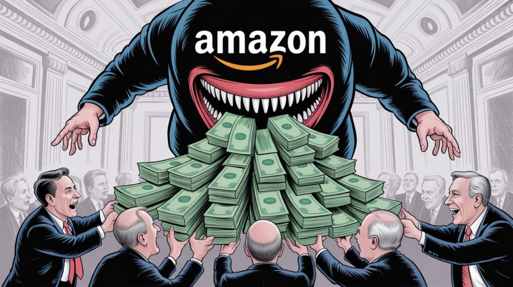 La réforme de 2017 a réduit le taux d’imposition des sociétés de 35 % à 21 %. Amazon a exploité diverses exonérations fiscales pour ne payer qu’un taux effectif moyen de 5,1 % au cours des quatre premières années suivant l’entrée en vigueur de la loi. Cela a libéré des ressources pour 6 milliards de dollars de rachats d’actions, une manœuvre financière qui gonfle artificiellement la valeur des rémunérations en actions des dirigeants.