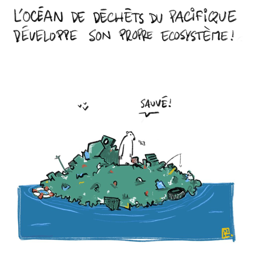Dans les gigantesques vortex de déchets du Pacifique, anémones et coquillages prospèrent sur les bidons de plastiques, les filets de pêche et autres débris flottants.