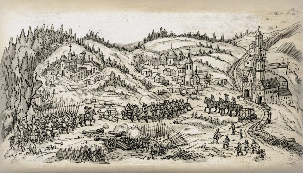 - Littéralement : le mouvement des « souliers à lacets », en allusion au type de chaussures que portaient les gens du peuple, par opposition aux bottes des nobles. Il s’agit d’une série de révoltes paysannes dans l’Allemagne du Sud-Ouest, dont la première date de 1493 et qui s’achève avec la Guerre des paysans.[↩]