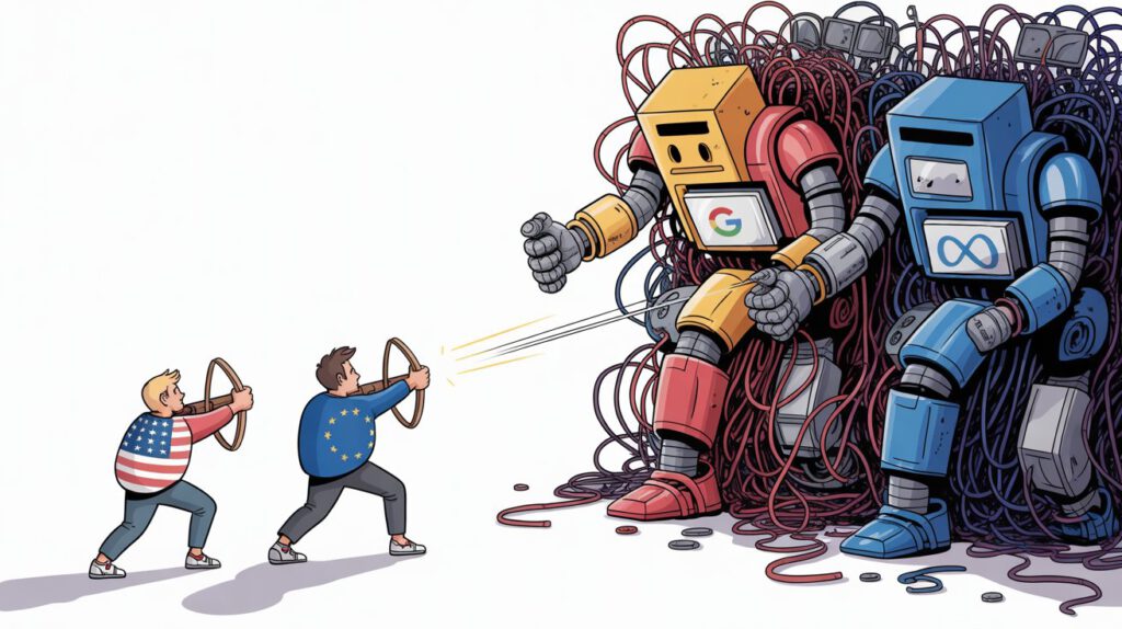 Les géants de la tech Google et Meta sont sous pression à Washington, tandis que l’Europe muscle sa riposte numérique. Un bras de fer aux enjeux colossaux pour l’avenir de l’industrie du numérique à l’ère de Trump.