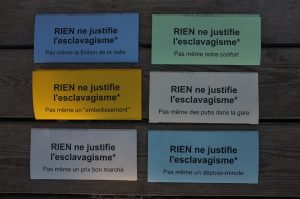 À Louvain-la-Neuve, c’est un autre modèle de société qu’une majorité prône. Elle dit oui aux petits commerces locaux et aux emplois de qualité, oui au respect des travailleurs du Sud. Elle dit stop aux émissions de gaz carboniques provoquées par les transports de marchandises, à la surconsommation et à l’exploitation inconsidérée des ressources naturelles. Elle veut la construction d’un fonctionnement alternatif, ici et maintenant.