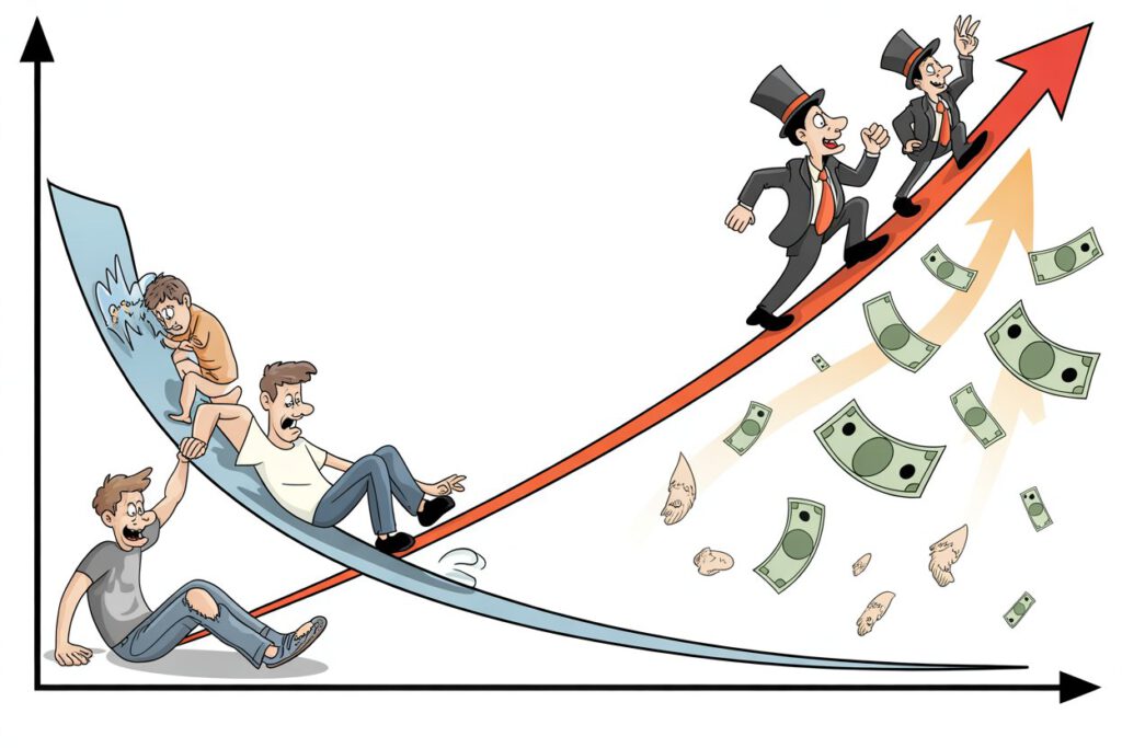 L’analyse des données du Bureau of Labor Statistics réalisée par la Réserve fédérale d’Atlanta montre qu’après des années de croissance supérieure à la tendance, les salaires des travailleurs américains les moins rémunérés ont ralenti plus fortement que ceux des plus rémunérés, effaçant ainsi une grande partie des progrès réalisés au cours de la dernière décennie pour réduire l’écart. Le salaire minimum fédéral reste fixé à 7,25 dollars depuis 2009, ce qui touche 1,3 million de travailleurs, comme l’indique le ministère du Travail. Le taux de syndicalisation est tombé à 10,1 % en 2022, son plus bas niveau jamais enregistré, affaiblissant le pouvoir de négociation dans des secteurs tels que le commerce de détail. Pendant ce temps, le marché boursier américain continue d’atteindre de nouveaux sommets, l’engouement pour l’intelligence artificielle, associé à la perspective de baisses des taux d’intérêt et de l’impôt sur les bénéfices des sociétés, alimentant la frénésie parmi l’élite.